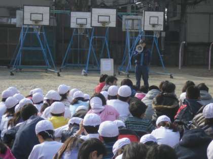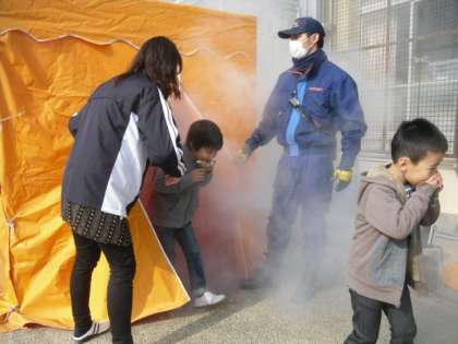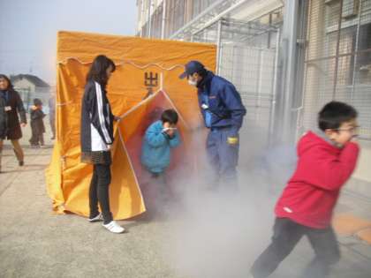 今日は避難訓練がありました。地震から火事が発生するという設定で,子ども達は,机の下に隠れた後避難の合図と共に運動場に避難しました。子ども達は避難経路を確認すると共に,緊急時への心構えや緊張感を持つことの大切さを学んだ一時間になったここと思います。また,煙ハウスを体験し,子ども達にとって実際の火事の様子もイメージしやすくなったのではないかなと思います。