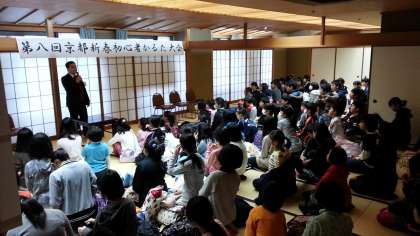 1月19日(日)京都アスニ—で『第8回新春初心者かるた大会』が開催され,本校からは全学年合わせて,約30名,5年生からも約15名が参加しました。他学年はほとんどが常時活動のカルタ部の子どもなので,たくさんの下の句を覚えていますが,5年生は,「とことんチャレンジ」の学年目標に基づく活動としてチャレンジしました。そのため,な,なんと,下の句5枚程度の暗記で参加した子どももいて,練習でも低学年にコテンパンにやられていました。それでも,笑顔でチャレンジしてくれたことに,高学年のたくましさを感じました。えらい!