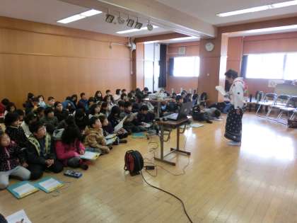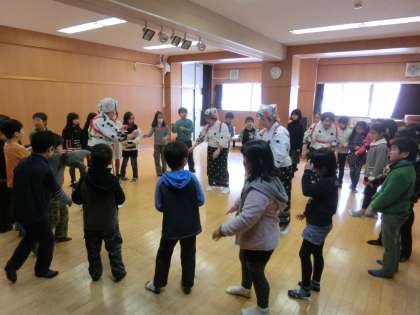 始めは,聞きなれない音頭や,足と手の動きに少し戸惑っていた子どもたちも,