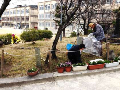 今日は土曜日にも関わらず,同窓会(中島布美子会長)の方々にお世話になり,午前10時から約2時間,築山整備をしていただきました。築山整備は,年に2回,同窓会の皆様にお世話になり,きれいにしていただいています。本日は,来る3月20日の卒業式と4月8日の入学式に向け,学校のシンボルである築山をきれいにしようと,ご尽力いただきました。同窓会の方々は,ご自分の出身校である修学院小学校をよくしようと,様々な場面でお世話いただいています。そんな同窓会に,今回卒業する118名の子どもたちも仲間入りします。同窓会の皆様,本日は有難うございました。