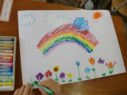 はじめての図画工作の学習で,自分のすきなものを絵にかきました。