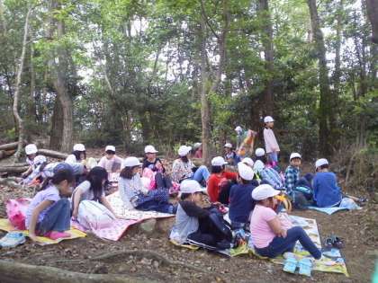 えっちら、おっちら。やっと着いた頂上。京都市を一望したあと、楽しいランチタイム。美味しいお弁当で、みんな元気100倍!