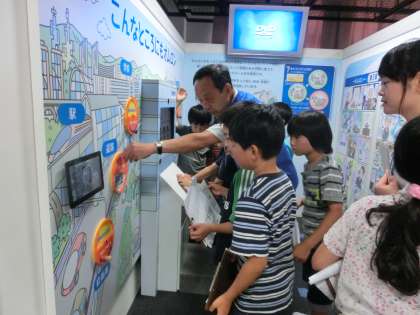 企業のブースを回り,子どもたちは一生懸命にモノづくりについて調べていました。