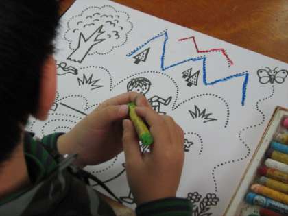 子どもたちは,1年の教室で紙芝居を見たり,お絵かきしたりしました。