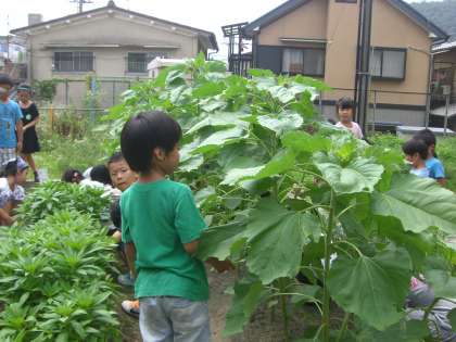 ひまわりは,もうみんなの背を越してしまいましたね。