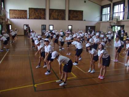 運動会の練習が始まりました。元気いっぱい踊りを練習しています。暑さに負けずにがんばります。