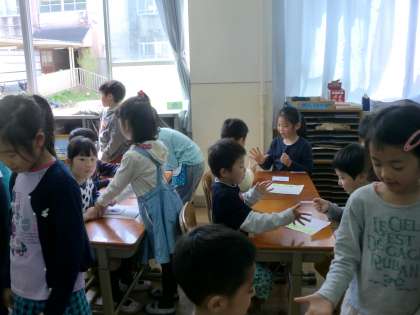 4月22日(水)に2年生となかよし会をしました。2年生からあさがおの花の種をもらい,校歌をきかせてもらいました。その後,「おちゃらかほい」をいっしょにしました。最後に,1年生から「どうぞよろしく」と言いました。楽しい会でした。