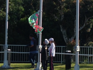 お天気が良いので,キャンプファイヤーをする営火場でしました。校歌もきれいに響き渡り,新しい友達の輪が広がりました。