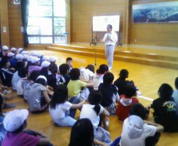 退所式を行い,全員そろってみさきの家をあとにしました。次はマリンランドでの活動になります。