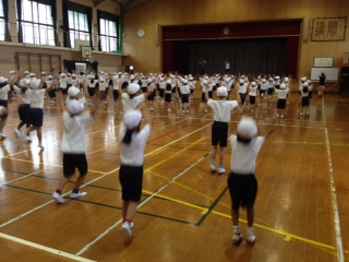 今日はあいにくの雨降り。朝から,運動場では活動しにくい状況です。今回は,3校時に,校内を歩き,それぞれの学年の一生懸命を見つけました。まずは,2年生の学年体育です。体育館で,運動会に向けた団体演技の練習に一生懸命です。一つ一つの動作をしっかり聞いた後,みんなで踊ります。そして,決めのポーズもバッチリ!続いて,北館2階,音楽室で6年生の熱心なリコーダー練習に遭遇しました。6年生の音楽は,スクールサポーターの山田先生にピアノ演奏などでお世話になっています。体育館での様子とはまた違った6年生の一生懸命に感心しました。3校時の最後は,ひまわり学級を訪れました。ひまわり学級では,夏の間に育てたカボチャを使った調理をエプロン&マスクスタイルで実施中でした。切るには少し硬いカボチャに苦戦しながらも,なんとか無事切り終えていました。一生懸命作った「スイートパンプキン」の味は格別でした。みんな大満足でした。