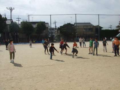 運動場では,みんなでドッジボールをしている姿が見えました。