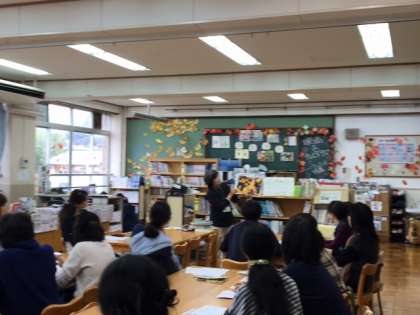 後半は図書室で,ブックトークが行われました。まずは,読み聞かせていただき,自然に関わる本をいくつか読み比べてみると同じテーマでも深まるというお話を聞いたり,子どもたちの疑問に応えるお勧めの本などを紹介していただいたり,実りの多い素晴らしい会になりました。