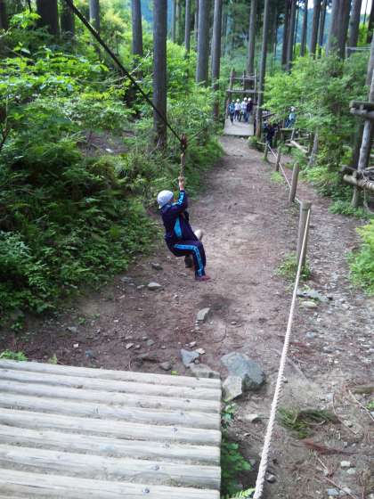 山の家内の施設に「冒険の森」があります。アスレチックがあり楽しく回ることができます。みんな元気で楽しんでいるようです。