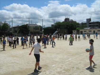今、校内ドッジボール大会で盛り上がっています。写真は、4年生の白熱する様子です。子どもたちが自ら相談してハチマキを作ってきた熱いクラスもあります。もちろん熱くなっているのは子どもだけではないようですが…。先生、応援に力が入りすぎてけがをしないでね!