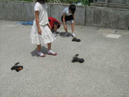 ソーラーカーを作りました。天気は抜群。きっと勢いよく走るぞ!と思いきや…走らない。坂が上れない。「まかせて下りなら走るよ!」それは、ソーラーでなくても走ると思うけど…。