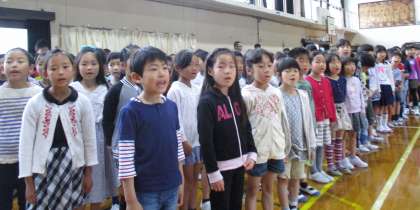 3年生はおむかえの言葉と,歌を発表しました。