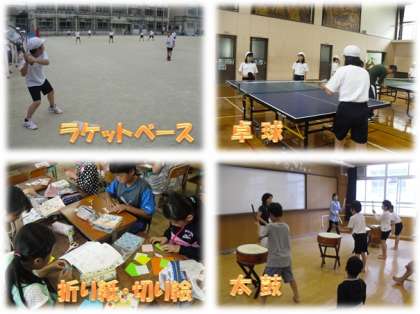 ラケットベースクラブは,あいにく途中で雨天中止となりましたが,学級や学年の枠を超えて,楽しくのびのびプレーしていました。
