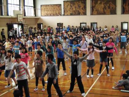 1年生を迎える会の出し物。4年生は「生きるための羅針盤みたいな歌」を歌って踊りました。 いきいき生きる/いきいき生きる/ひとりで立って/いきいき生きる/困ったときは目をあげて/星を目あてにまっすぐ生きる/息あるうちはいきいき生きる//はっきり話す/はっきり話す/びくびくせずに/はっきり話す/困ったときはあわてずに/人間についてよく考える/考えたならはっきり話す//しっかりつかむ/しっかりつかむ/まことの知恵をしっかりつかむ/困ったときは手を出して/ともだちの手をしっかりつかむ/手と手をつないで/しっかり生きる 4年生は自分たちの座席で歌うのではなく,1年生の前にすばやく,かっこよく整列し,1番の歌詞の群読,そして,歌,最後はがんばって練習した振り付けで1番を歌って踊りました。