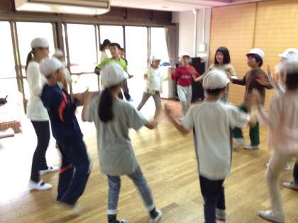 朝から降り続いている雨は,午後からもやみません。そこで,子どもたちは,明日のキャンプファイヤー準備として,みんなで踊るフォークダンスの室内練習をしました。子ども同士で声を掛け合いながら,とても盛り上がっていました。明日の夜が楽しみです。