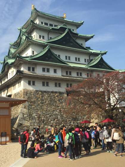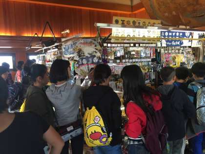 予定より少し早く名護屋城へ着きました。初めにクラス写真を撮ってから,天守閣に向かいます。城内見学をした後は,家族へのお土産を思案しながら選んでいます。