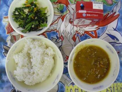 給食調理員さん手作りのルーのうま味を味わいました。