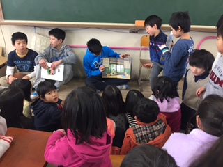 今日は,6年生の図書委員が1年生の教室に読み聞かせに行きました。今年度3回目の読書週間です。読み聞かせの本選びも上達していて,大型絵本,紙芝居,人気の絵本や怖い話の本などバラエティーに富んでいました。