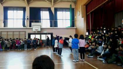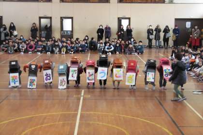 憧れの6年生の卒業にお祝いの気持ちを込めて「ぼくのひこうき」を歌いました。また,たてわり活動のグループ代表として,プレゼントを渡しました。