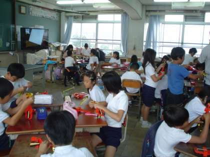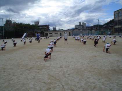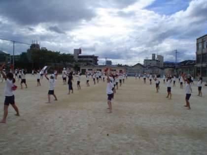 よさこいソーランの練習があと1回になりました。ひじを曲げずに手をピンと伸ばし、とめるべき時はとめる、ためるところはためる、膝を曲げ腰を落として、ひとりひとりの踊りが、大変上手になってきました。縦ライン、横ライン、斜めラインを意識して全体がそろうように明日総仕上げをします。秋の陽にキラキラひかるように今日は鳴子にかざりをつけました。運動会当日、力を合わせて迫力ある踊りを披露しますので、ぜひ見に来てください。