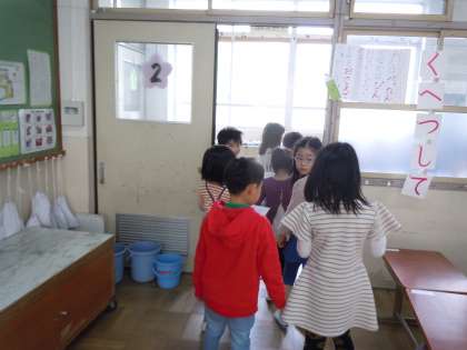今日は,2年生と1年生合同の生活の学習で,学校たんけんをしました。