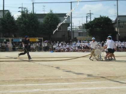 高学年が運動会を支えています。綱引きの準備の様子です。
