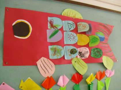カラフルなかわいいこいのぼりができあがりました。