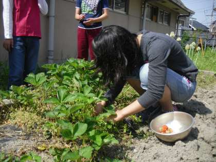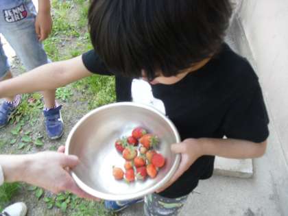今年初めて,イチゴが収穫できました。