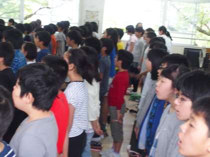 1年生を迎える会で歌う歌を学年で練習するためです。