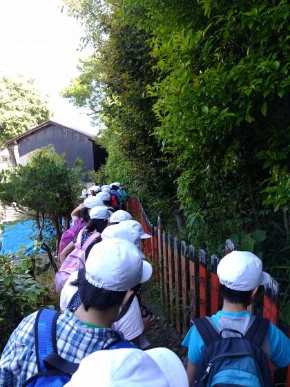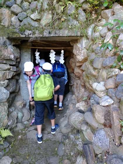 6世紀前半に造られたと推定される天塚古墳に着きました。見学してメモを取っています。