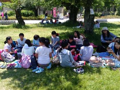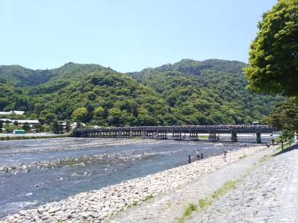午前中の見学を終えて、嵐山でお昼のお弁当タイム。