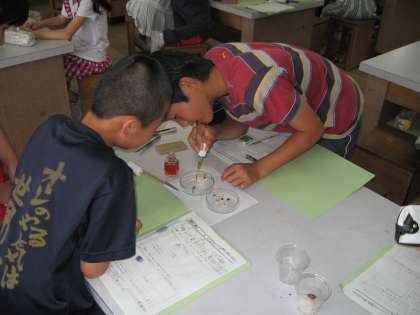 青紫色に変わる様子に,子どもたちは大興奮です。