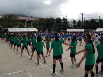 修学院区民運動会が行われています。昨日の雨のため,少し開始が遅れましたが,プログラムどおりに行われています。