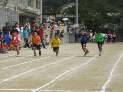 写真は、午前の部最後の小学生リレーの様子です。