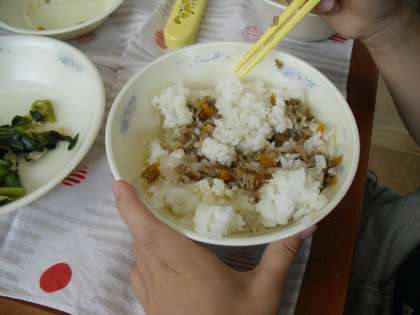 ごはんにさばそぼろをのせて「さばそぼろ丼」にして