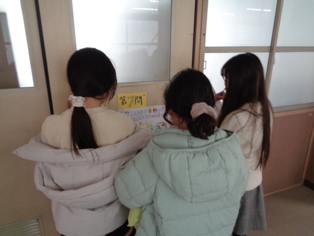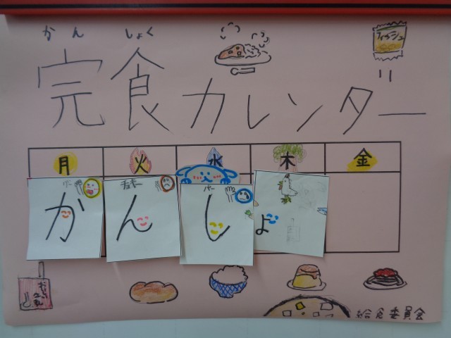 給食委員会が企画した「給食クイズラリー」を一生懸命に探しながら解いたり、「完食カレンダー」を完成させるためにクラスで完食にむけて頑張ったりしています。