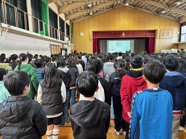 今日の朝会の様子です。久々の体育館での実施で、気温も低い中でしたが、切り替える時は切り替える姿を示してくれたと思います。