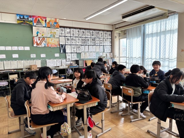 国語科「考えるとは」の学習の様子です。今回は実際に自分たちが興味をもったテーマにそって、自分の考えを伝えるという活動をしました。どんどん考えが深まり、最初のテーマからかけ離れたところにまで到達しているグループもあり、活発に意見交流ができたことが伝わりました。