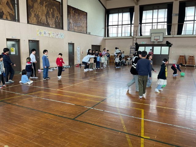総合的な学習の時間を活用し、1年生と一緒に遊びました。障害物リレーや手繋ぎおになど、6年生が考えた遊びを全力で楽しむ姿が素敵でした。卒業を前に、1年生、6年生の双方にとって良い時間を過ごすことができました。