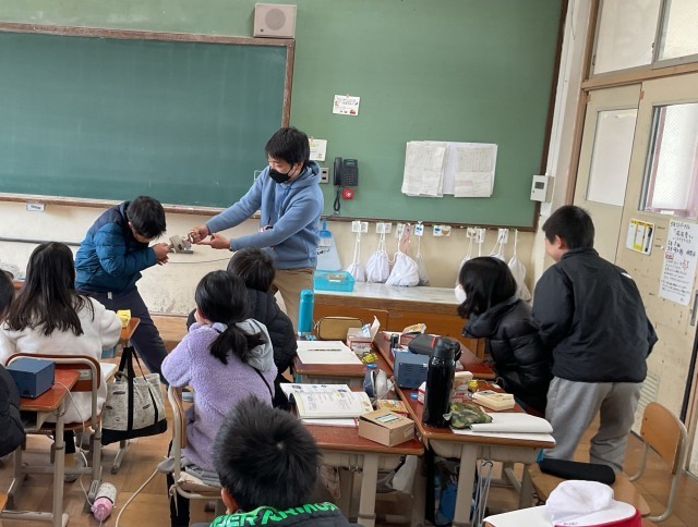 コイルの巻き数を増やすことで、何人もが引っ張っても離れないくらいの強力な電磁石になりました。子どもたちは一生懸命引っ張りながら、こうした電磁石の性質が私たちの生活の様々な場所に使われているのだと知ることができました。