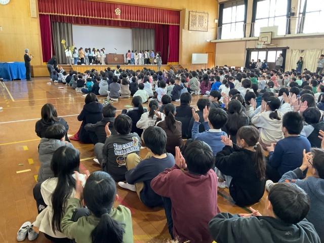 今年度もお世話になった見守り隊の皆さんに感謝を伝えました。6年生から、本部委員会の子どもたちが代表で言葉を伝えてくれました。卒業まで、そして中学生になってもお世話になることもあるでしょう。その際は元気に挨拶ができるみんなであってほしいと思います。