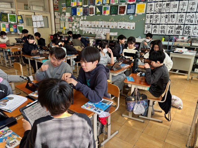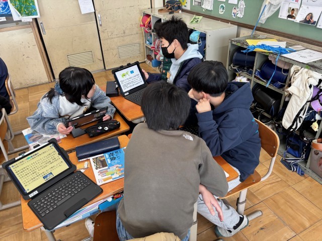 世界の課題に対する取組について、調べたことを伝え合いました。それぞれ興味をもつポイントが違うため、学びも多かったようです。