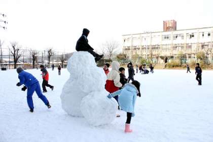 昨夜からの降雪で運動場にはたくさんの雪が積もりました。子どもたちは,朝から雪合戦や雪だるま作り,かまくら作りなどで大喜びです。今冬は例年になく寒い日が続きました。雪の降る日も何回か有りましたが,今日ほど積もったのは初めてです。午後になっても運動場の雪は残っています。明日も雪遊びができそうです。