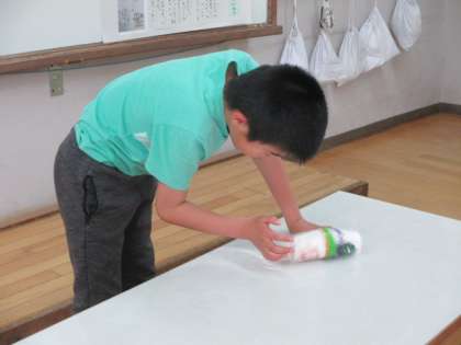 写真だとわかりにくいのですが,紙コップがとてもふしぎな動きをするのです。ブルブルブルブル震えて,紙コップを立てることができないのです。