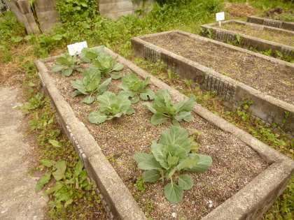 3年生の畑には,キャベツが植えてあります。食べるためのものではありません。理科の学習で使います。キャベツの葉のうらをみると・・・