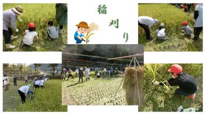 地域の田んぼの先生方,そして保護者の皆様,たくさんの方々に教えていただき,お手伝いをいただき,稲刈りを行うことができました。ありがとうございました。